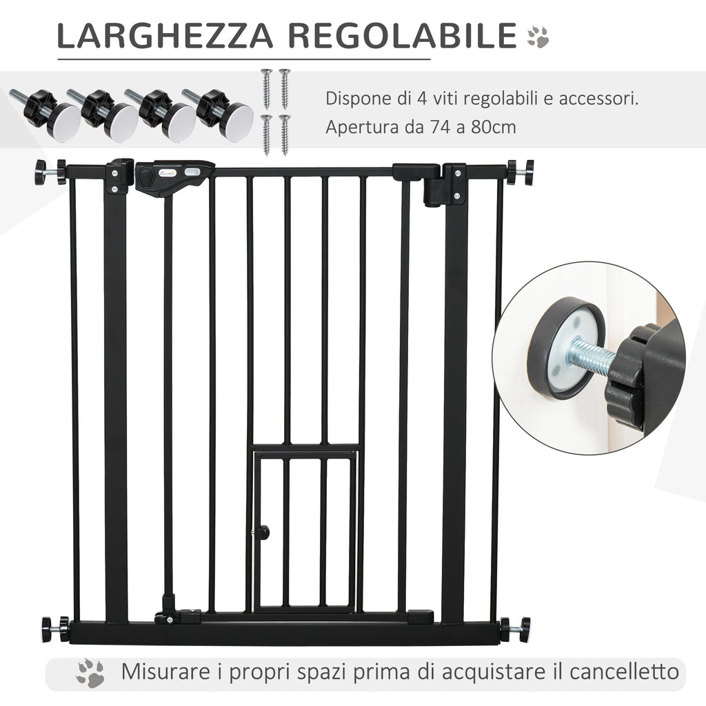 Verstellbares Sicherheitsgitter für Hunde 74-80 cm mit automatischer Schließung Schwarz