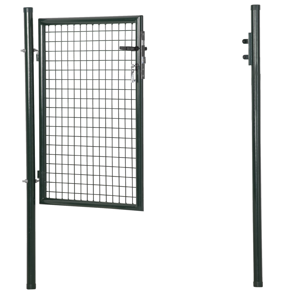 Vervollständigen Sie Ihren Zaun und schützen Sie Ihren Garten mit diesem Tor. Modern und praktisch, aus rostfreiem Stahl gefertigt und mit zwei stabilen Stützstangen und einer kleinen Tür mit Griff ausgestattet. Einfach zu installieren, inklusive 3 Schlüssel für das Schloss.