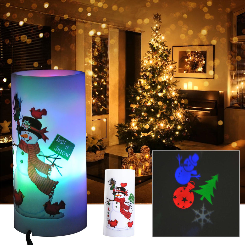 LED-Weihnachtskerze mit Projektor 4 Lichteffekte Weiß Ø7x15 cm
