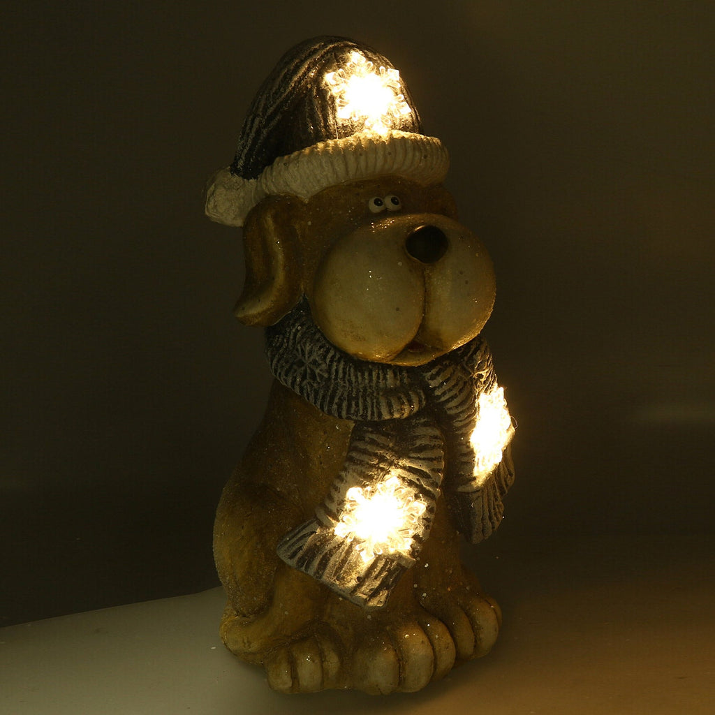 Hund aus Kunstharz mit grauem LED-Hut 22x19,5xh40 cm