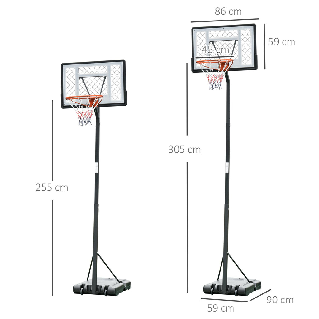 - ABMESSUNGEN: Gesamtabmessungen: 86L x 153D x 302-352Hcm. Brettgröße: 86L x 59Hcm. Korbhöhe: 255-305 cm.