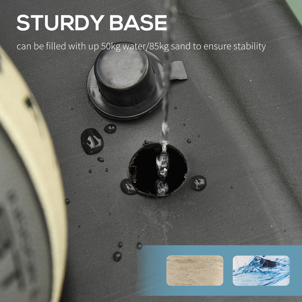 - Die Basis kann mit 50 kg Wasser oder 85 kg Sand gefüllt werden, um die Stabilität zu gewährleisten