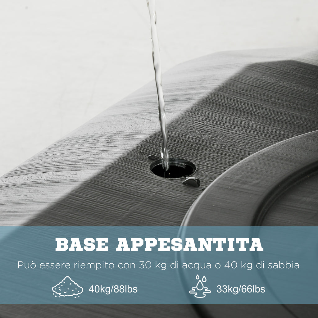 - Capacità della base: 30 kg di acqua e 40 kg di sabbia
