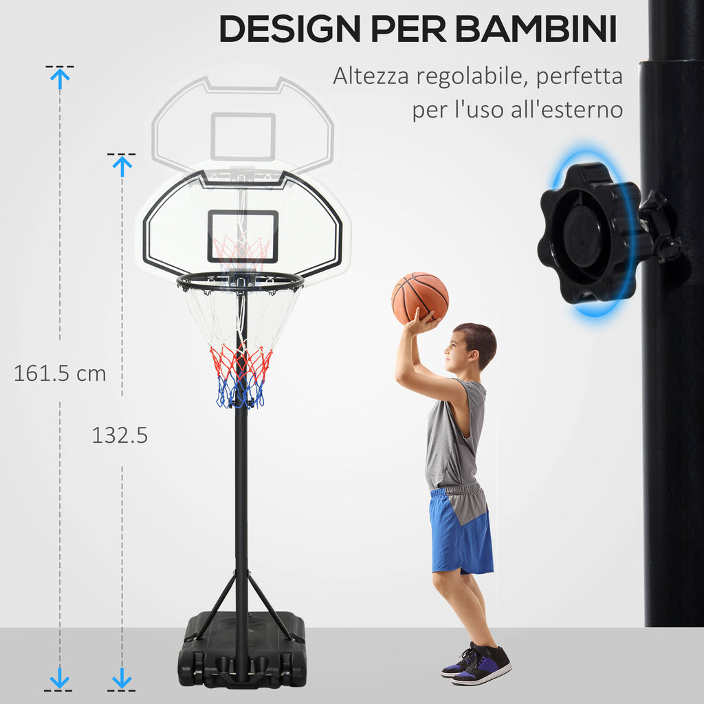Canestro da Basket da Esterno per Bambini Altezza Regolabile 132,5-161,5 cm Multicolore