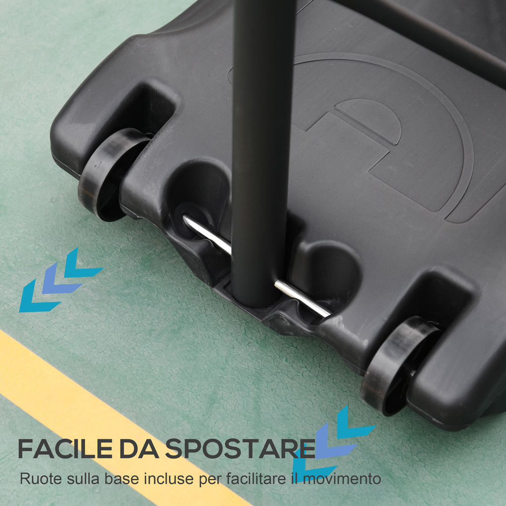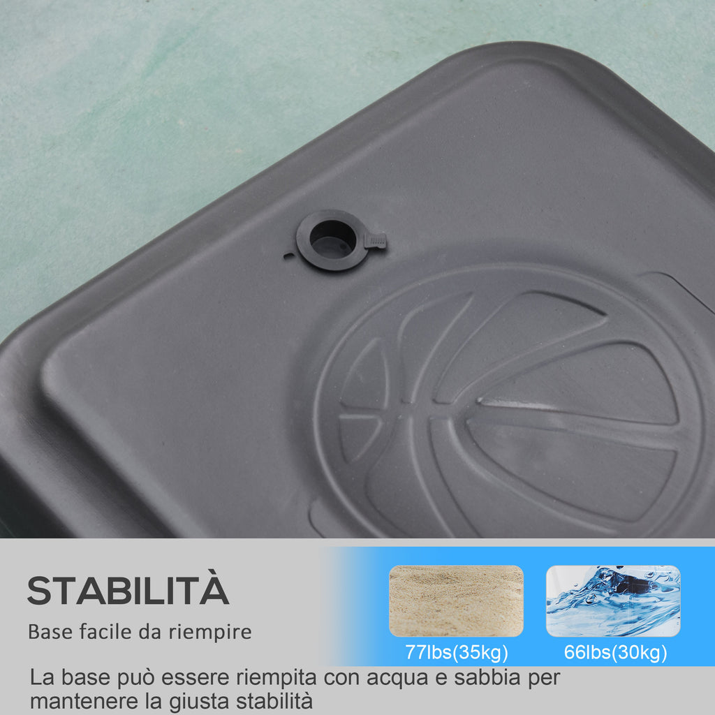 - BASE E DIMENSIONI: La base zavorrata può essere facilmente spostata da un luogo all'altro e può essere riempita con 35kg di sabbia o 30 litri d'acqua per mantenerla in posizione. Altezza del tabellone: 132,5 cm - 161,5A cm. Nota: adatto per piscine di altezza inferiore a 1 metro