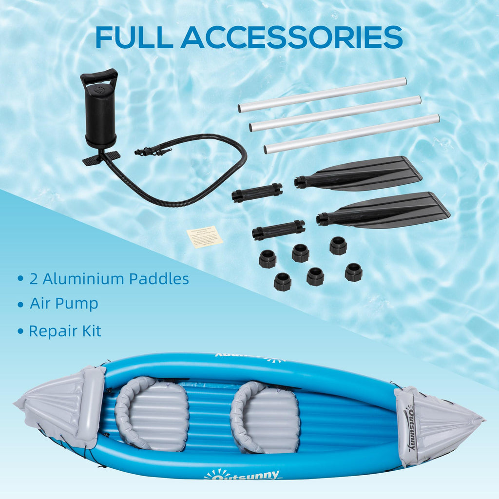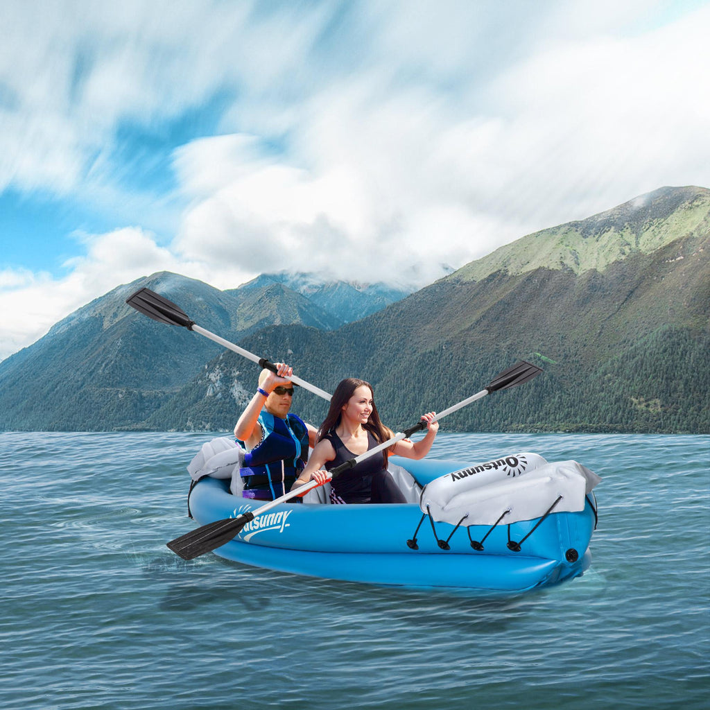 Paddeln Sie mit Ihrem neuen aufblasbaren Kanu zu Traumzielen. Entworfen für 2 Personen, lässt es sich in Minuten aufblasen und ist leicht und einfach zu tragen. Enthält alles, was Sie brauchen, um sich beruhigt auf eine Reise auf kristallklarem Wasser zu begeben: 2 Ruder, 1 Pumpe und ein Reparaturset. Worauf wartest du? Tauchen Sie ein, reiten Sie auf den Wellen und genießen Sie den Sommer an Bord Ihres neuen aufblasbaren Kajaks!