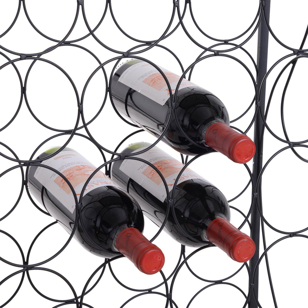 Jeder Weinkenner weiß, wie wichtig ein gutes Weinregal zur Aufbewahrung und Präsentation Ihrer Lieblingsflaschen ist. Unser Flaschenhalter ermöglicht Ihnen die Aufnahme und Aufbewahrung von bis zu 28 Standardflaschen mit 750 ml, besonders geeignet für Weinflaschen. Es hat auch ein großes offenes Regal, wo Sie Ihre Stielgläser und Gläser platzieren können. Das klassische schwarze Stahl-Finish ruft eine zeitgemäße Atmosphäre hervor, die praktisch jeden Einrichtungsstil ergänzt. Halten Sie Ihre sicher und maximieren Sie den Platz mit diesem fantastischen Flaschenhalter!