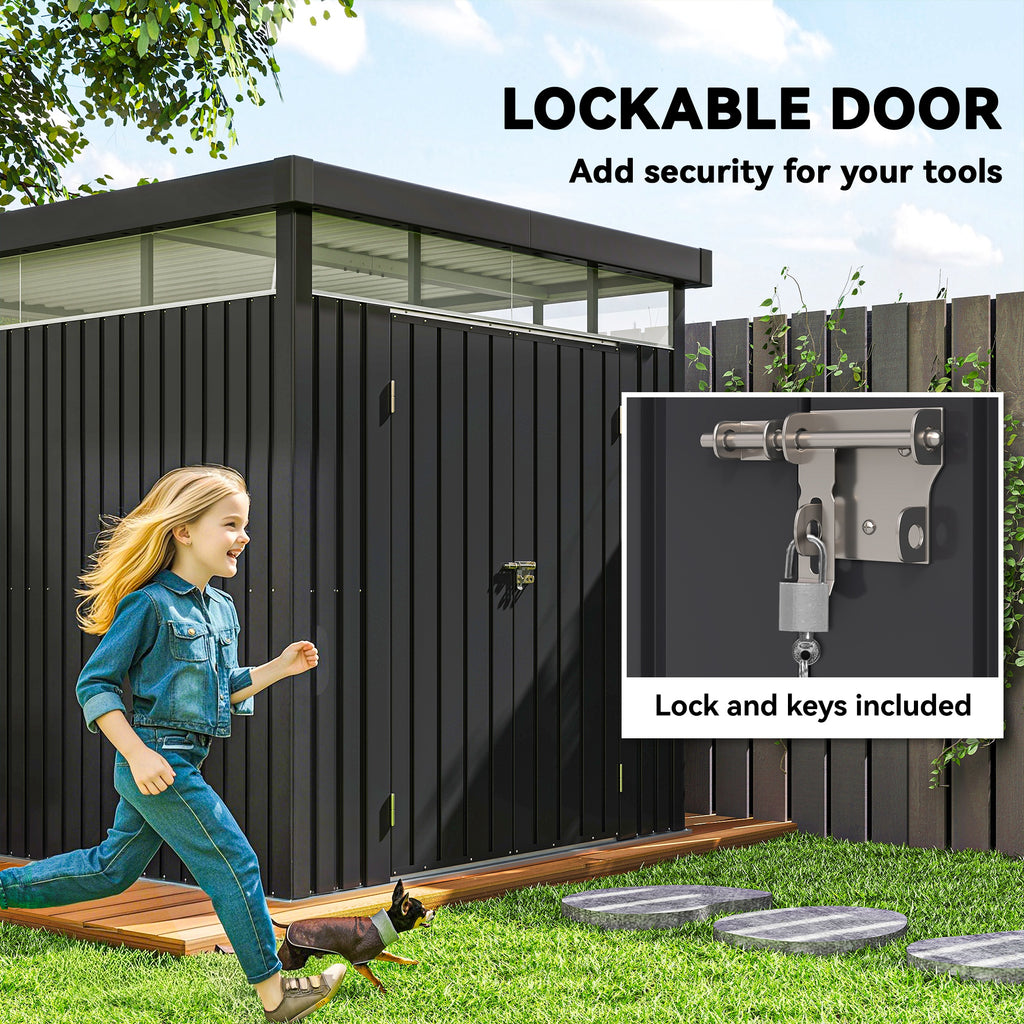 • SPAZIO A DISPOSIZIONE: Lo spazio interno di 1.8x2.4 m del nostro capanno da giardino in metallo offre abbondante spazio per riporre in sicurezza tutti i tuoi attrezzi, attrezzature e accessori da esterno, mantenendo l'ambiente sempre in ordine