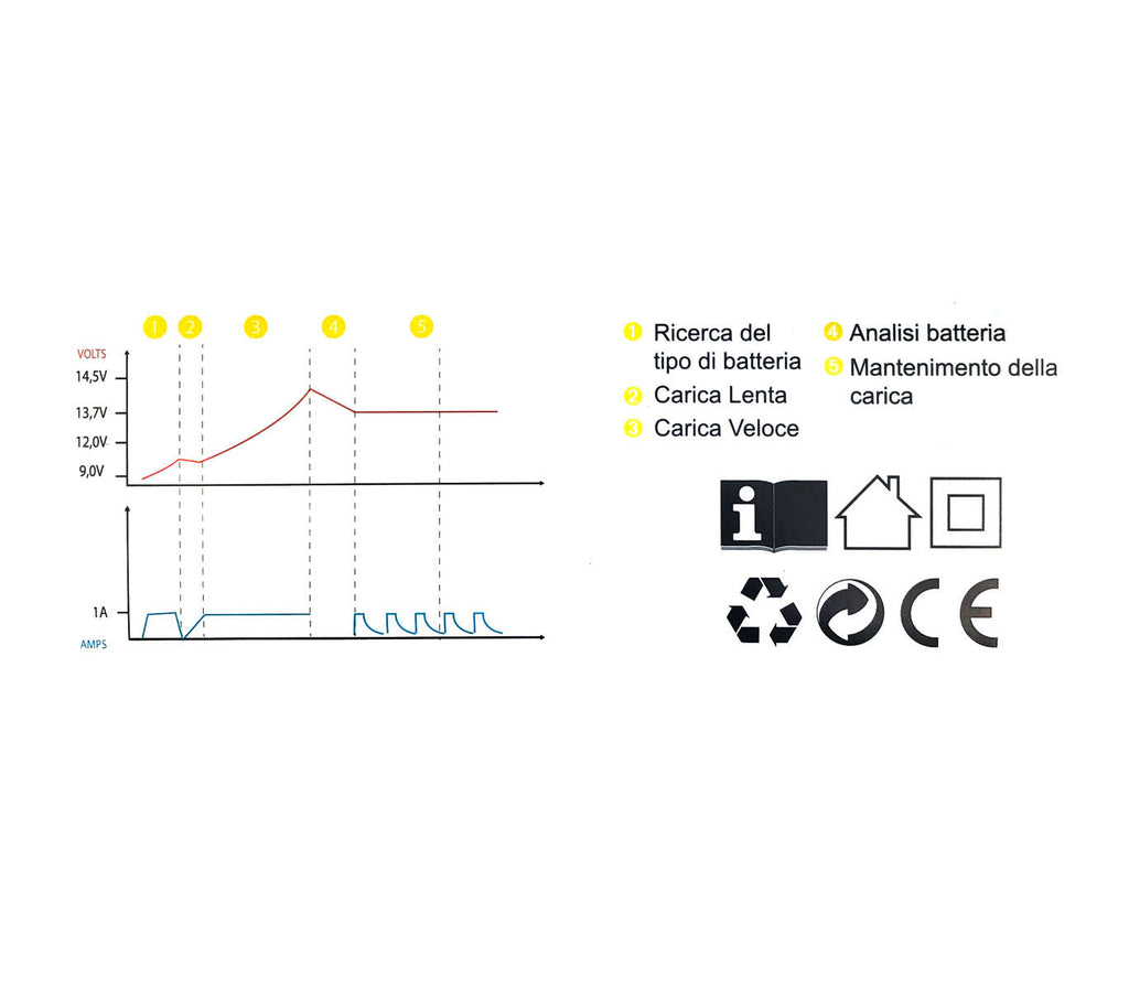 Batterielade- und Erhaltungsladegerät für kleine Auto-Motorrad-Bootsbatterien Marke: AllRide Geeignet für Blei-, Gel- und AGM-Batterien mit Kapazitäten zwischen 4 und 120 Ah. Nicht mit Nickel-Cadmium-Batterien oder Batterien verwenden, die nicht im vorherigen Punkt angegeben sind.