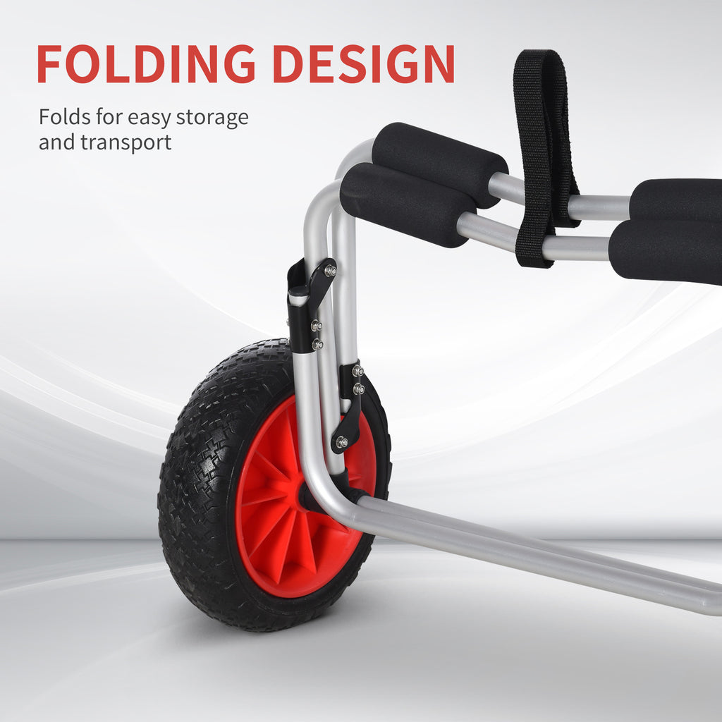 Carrellino da Spiaggia Pieghevole per Kayak e Canoa con Paraurti 70x40x42 cm in Alluminio e NBR Argento Nero e Rosso