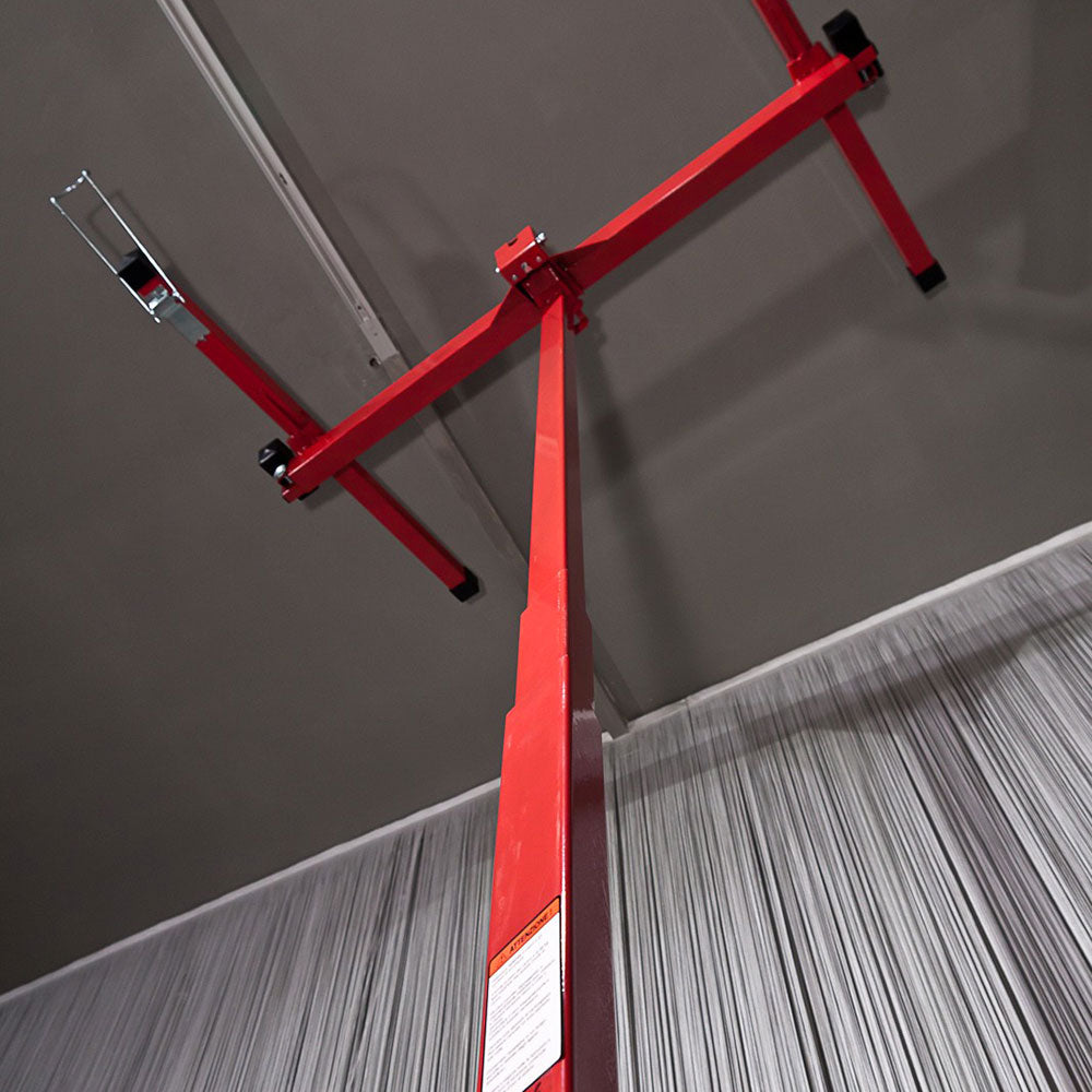 Die Verwendung eines Plattenhebers oder Plattenhebers ist sicherlich der schnellste und effektivste Weg, um Gipskartonplatten ohne Rückenschmerzen zu installieren, insbesondere wenn Sie ein professioneller Installateur sind. Die eingesparte Zeit amortisiert die Kosten des Plattenhebers vollständig. Der Plattenheber hebt Gipskartonplatten bis zu einer Größe von 1,20m x 4,88m, ist komplett aus Stahl gefertigt und mit Bremsen an allen drei Rädern ausgestattet. Dank seines geringen Gewichts von ca. 40 kg lässt er sich leicht zusammenklappen und transportieren.