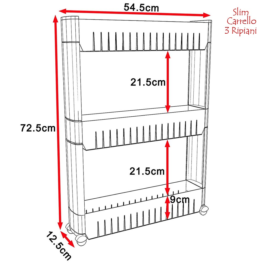 1 x Carrello Carrellino Slim Salvaspazio Cucina BagnoRipostiglio 3 Ripiani e 4Ruote