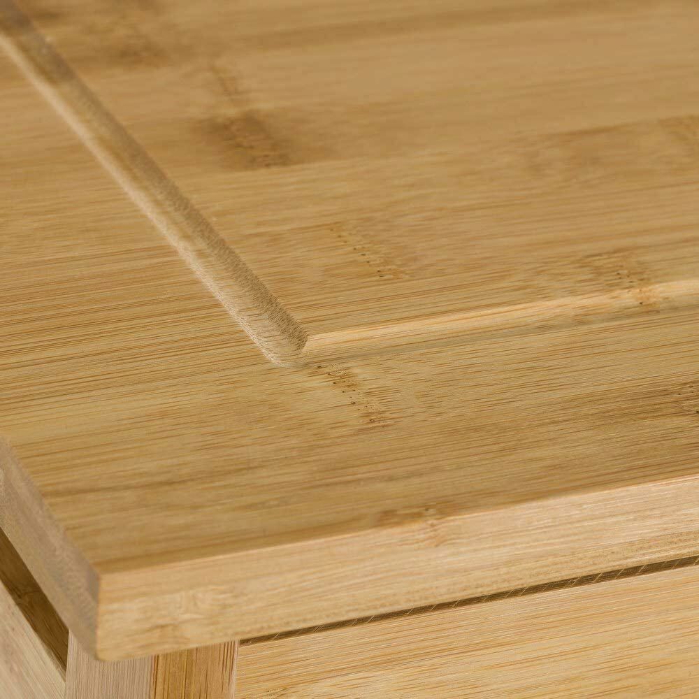 Questo nuovo e funzionale carrello da cucina è realizzato interamente in legnodi bambù naturale di altissima qualità , è caratterizzato da un pratico piano da poter utilizzare o come superfice d'appoggio o come tagliere, facile da pulire e riutilizzare.