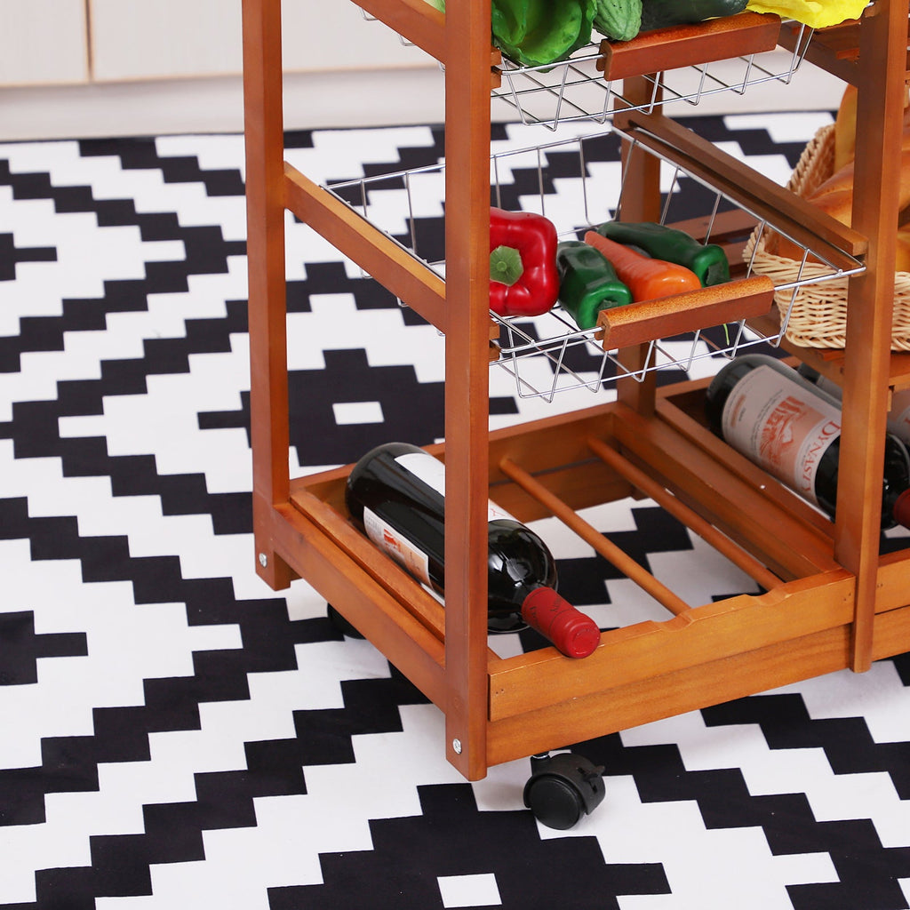 Mehrzweck-Küchenwagen aus Kiefernholz mit 4 Rädern und Schubladen, hellbraun, 74 x 37 x 75 cm