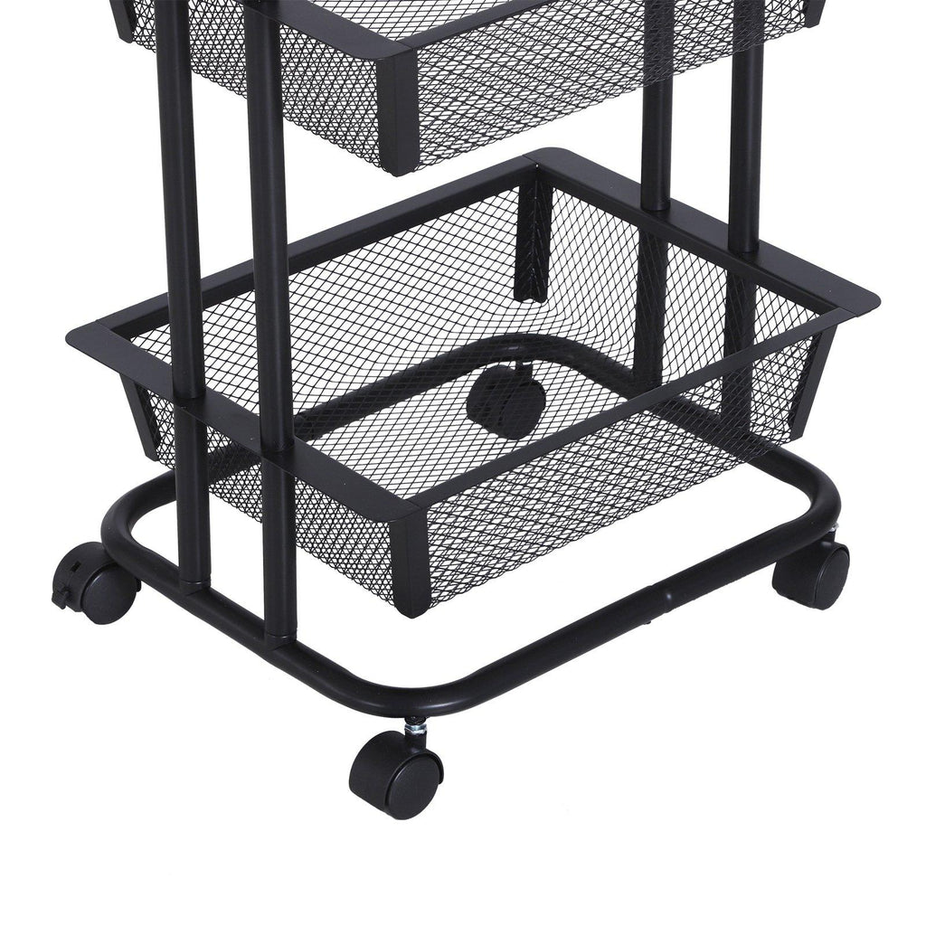 Platzsparender Mehrzweck-Küchenwagen mit 3 Ebenen aus schwarzem Stahlgeflecht 40 x 30 x 79 cm