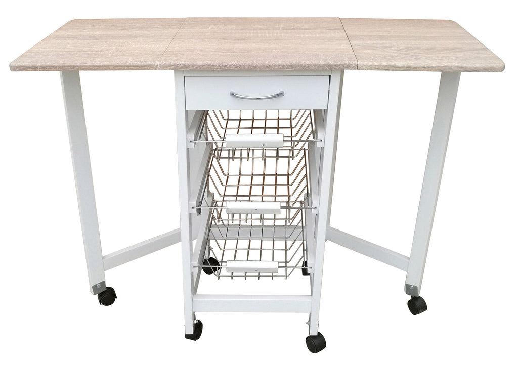 Platzsparender, faltbarer Küchenwagen 96 x 37 x 77 cm aus weißem MDF und Sonoma