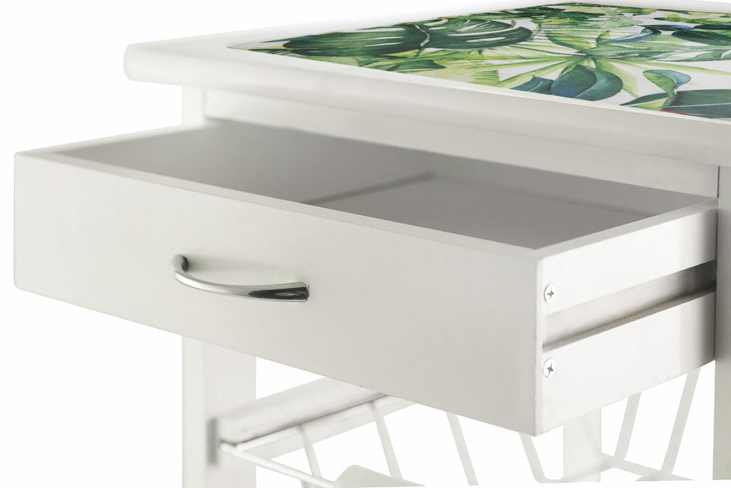 Platzsparender Küchenwagen 37x37x76 cm 3 Holzkörbe Soriani Kaktus Weiß
