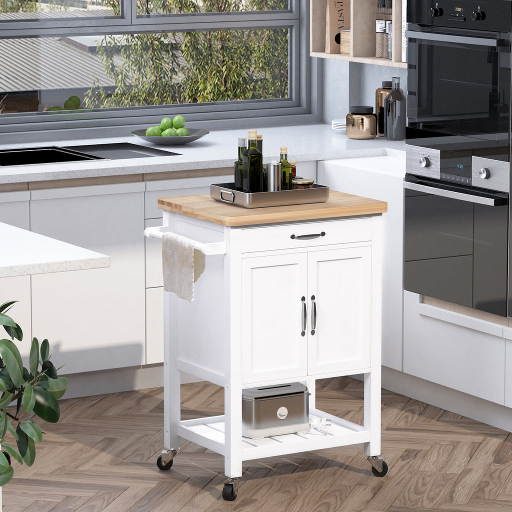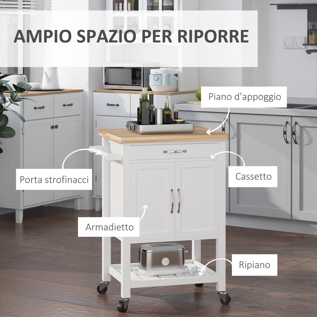 Platzsparender Küchenwagen aus weißem Holz 65x48x90 cm