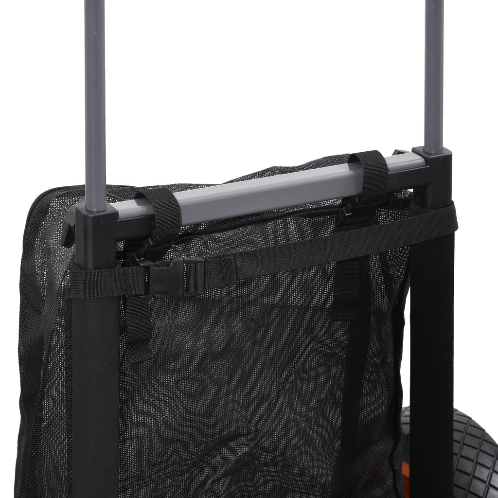 Porta i tuoi oggetti ovunque sulla spiaggia con il carrello mare. Posiziona l'attrezzatura da spiaggia (come lettini e ombrelloni) sul piano di carico, infila gli altri oggetti personali nella profonda tasca in rete e porta tutto in giro fino a dove è necessario. Il carrello è anche in grado di affrontare quasi tutti i terreni, grazie alle due ruote extra-large e alla comoda maniglia. Quando si è pronti a fare i bagagli, questo carrello può essere ripiegato quasi istantaneamente.