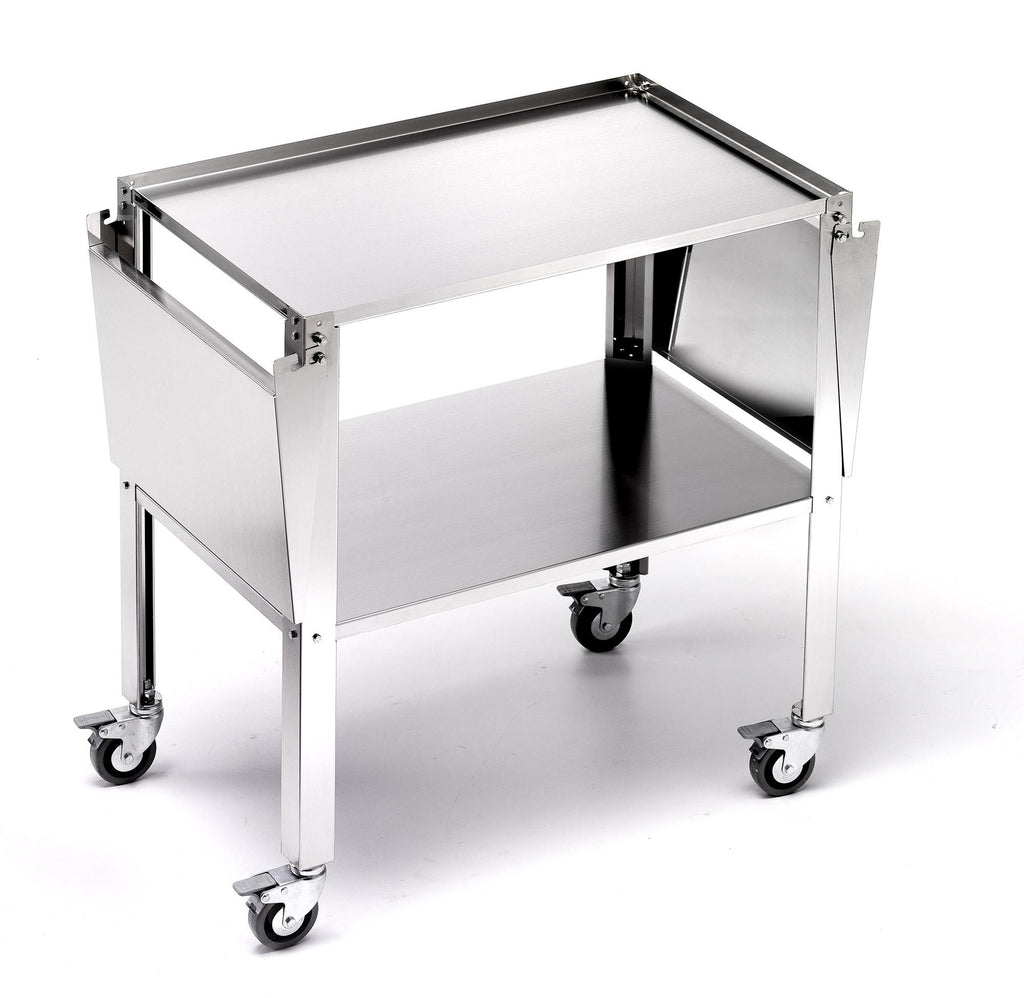Servierwagen aus Edelstahl mit klappbaren Seitenablagen und Ompagrill 46130 Rädern