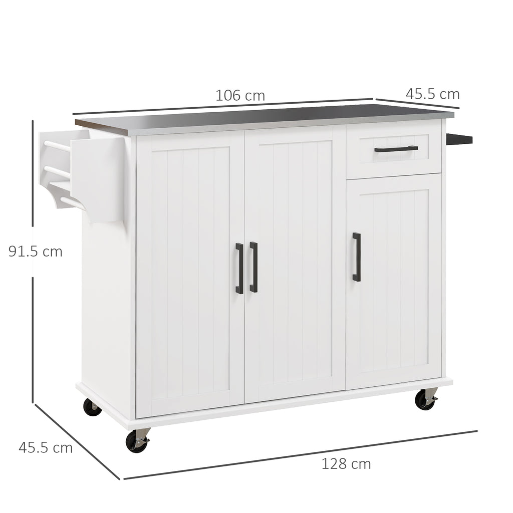 Carrello Isola da Cucina 128x45,5x91,5 cm in MDF e Acciaio Inox Bianco