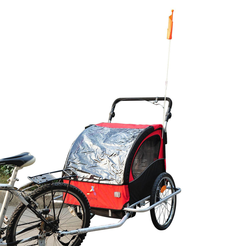 2 in 1 roter und schwarzer Fahrradtrolley und Kinderwagen
