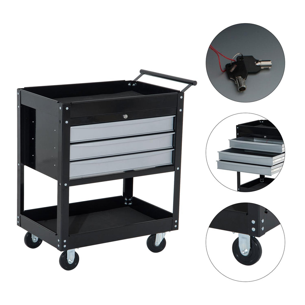 Professionelle Werkstatt-Werkzeugwagen-Kommode aus schwarzem Blech 68 x 46 x 88 cm