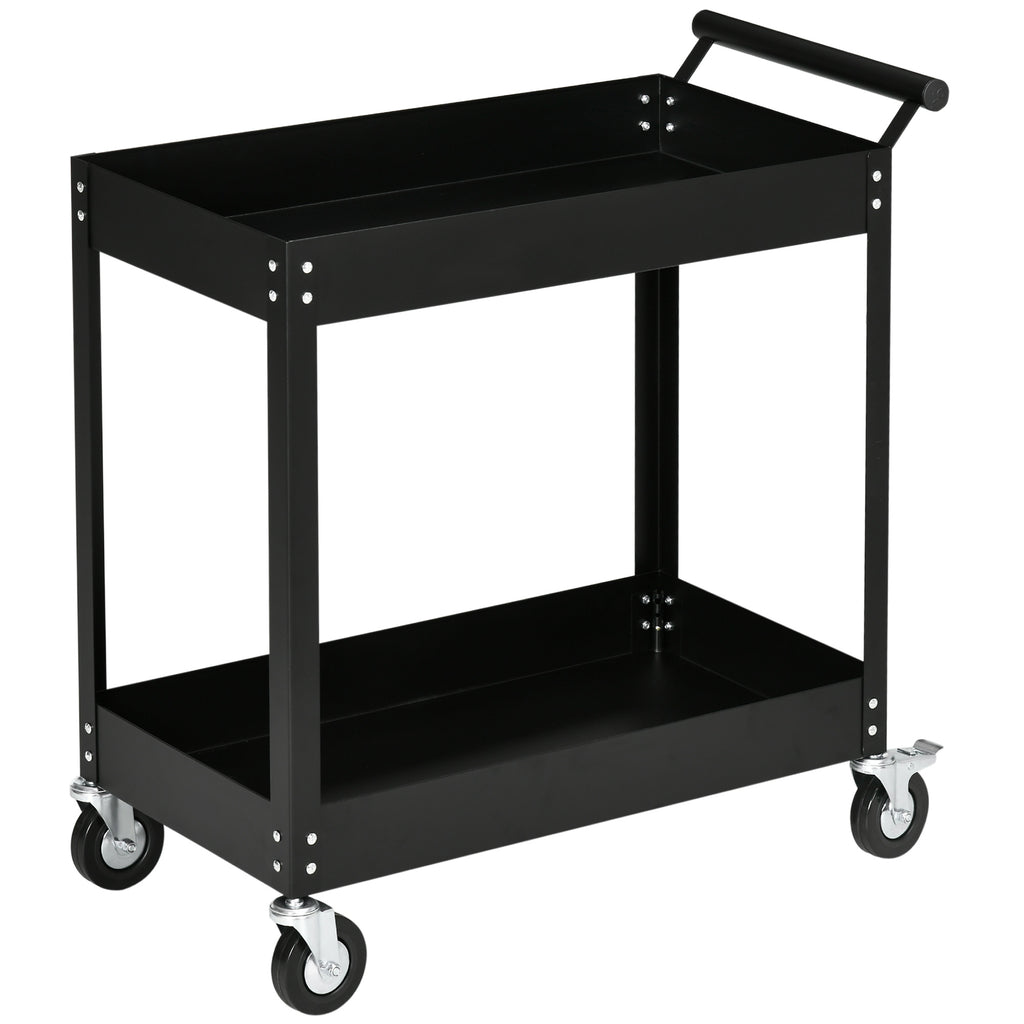 Dieser Werkstattwagen ist Ihr perfekter Arbeitsassistent. Die zwei Regale bieten Ihnen viel Platz zum Platzieren Ihrer Werkzeuge, und der Griff und die Räder ermöglichen es Ihnen, es einfach dorthin zu bewegen, wo Sie es brauchen. Die Stahlkonstruktion sorgt für optimale Stabilität und macht diesen Werkzeugwagen ideal, um Sie bei Ihren Aufgaben in Garage, Werkstatt usw. zu unterstützen.