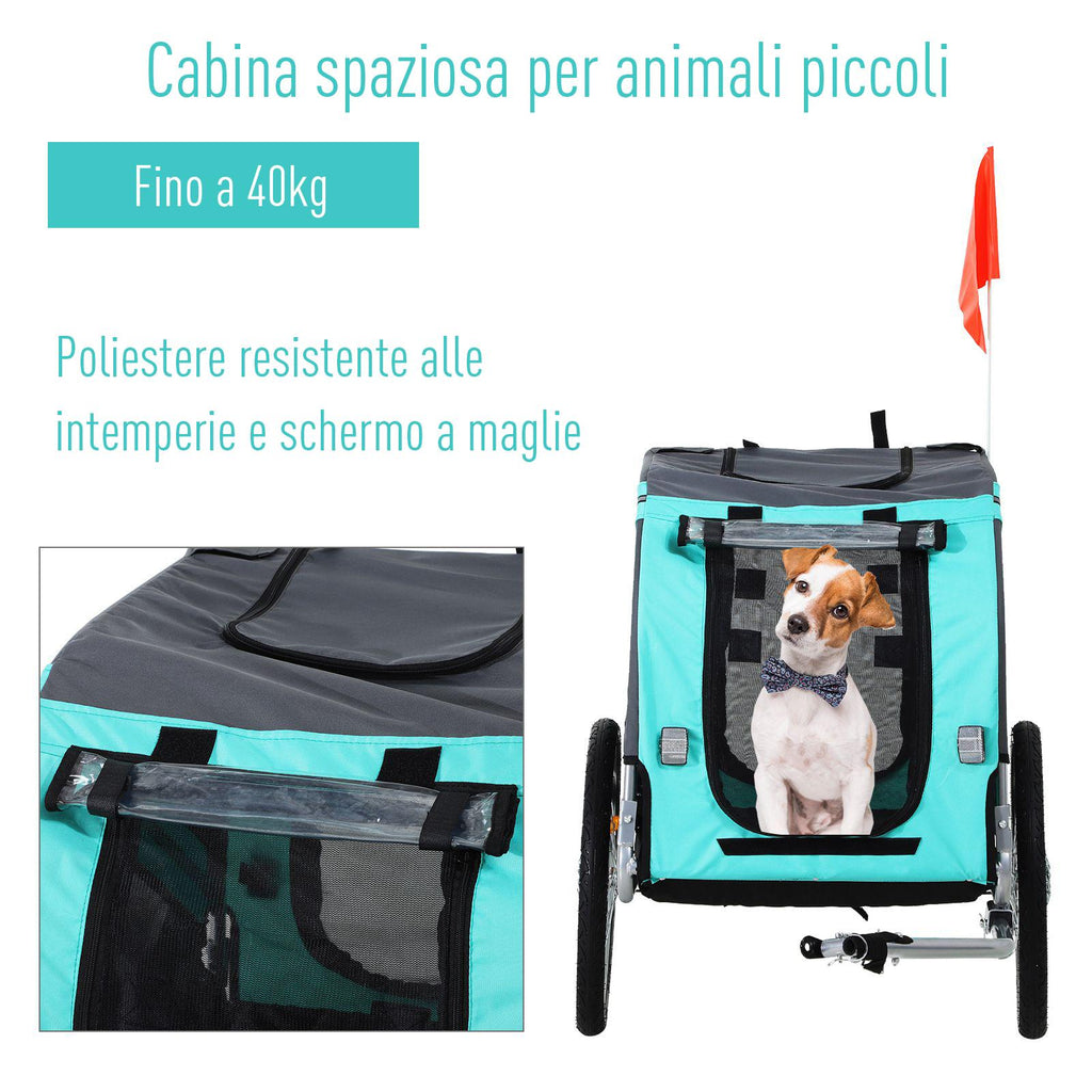 Fahrradanhänger für Hunde und Haustiere, wasserdicht, blau und grau