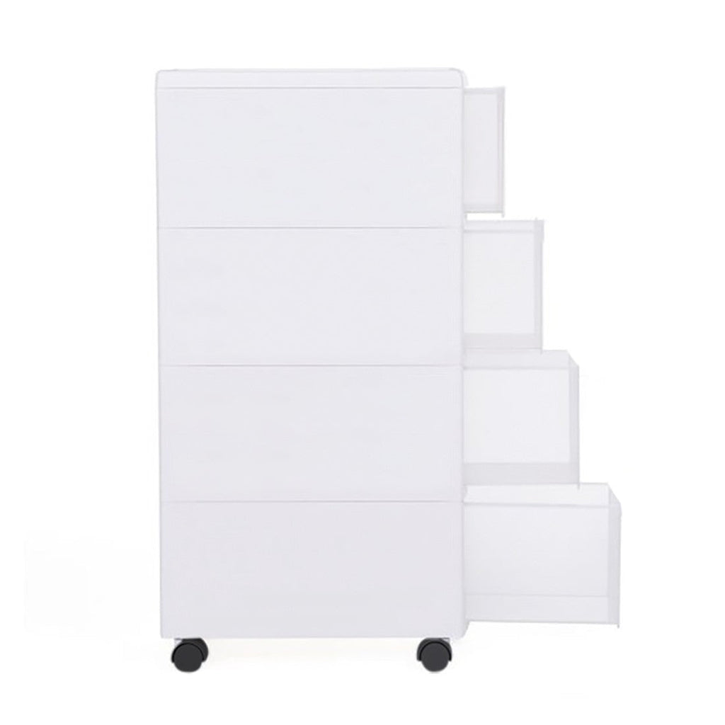 Schmaler Mehrzweckwagen 4 platzsparende Schubladen mit Rollen aus weißem Kunststoff