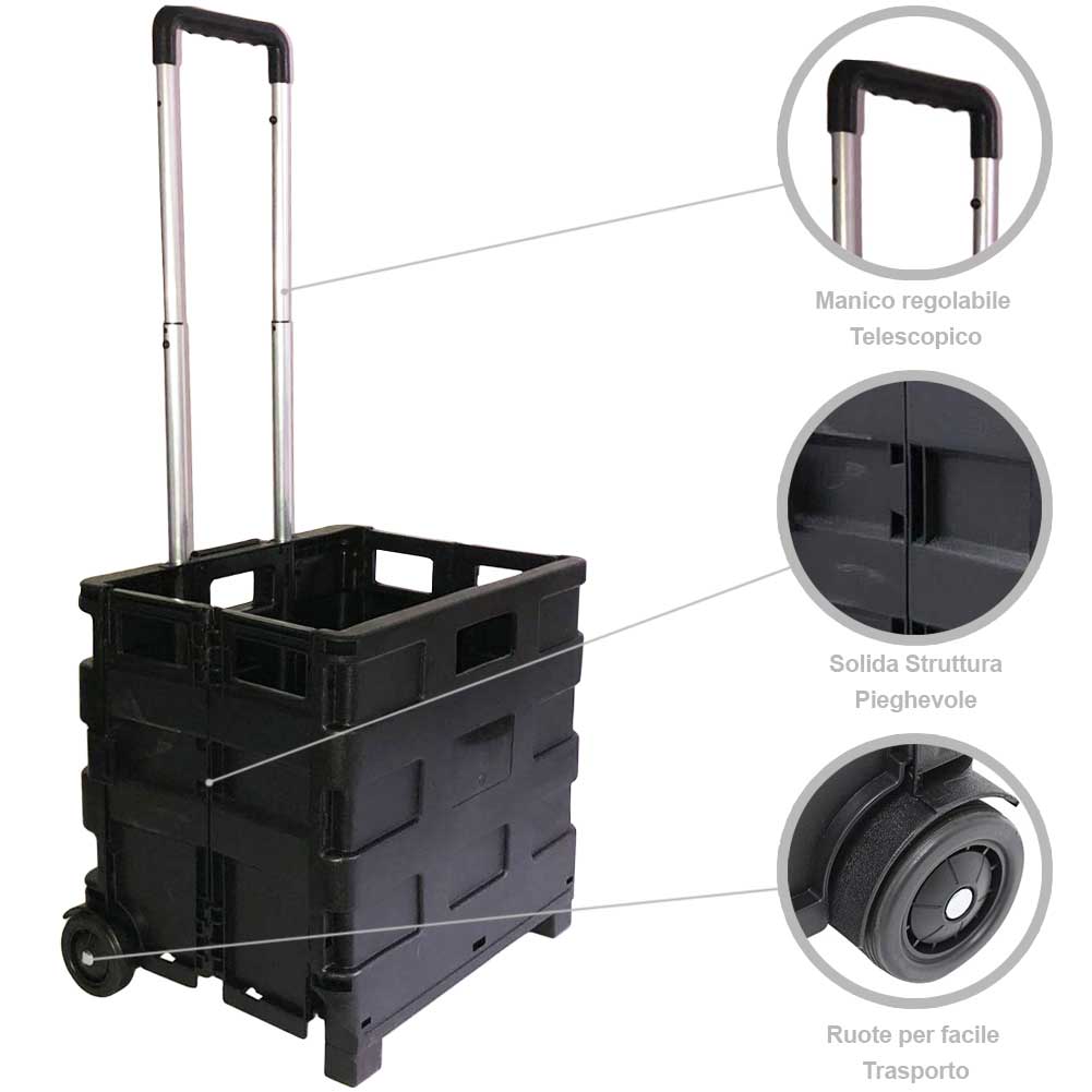 Questo incredibile carrello multiuso è l'ideale per il campeggio, per trasportare la spesa, documenti d'ufficio, o qualsiasi peso che non superi i 25 kg.