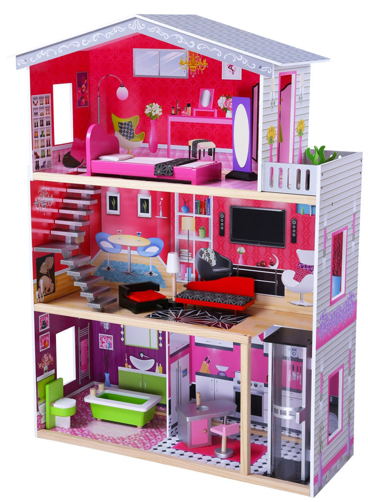 Puppenhaus 3 Etagen 83x32x115cm in Wood Miller Villino Fashion