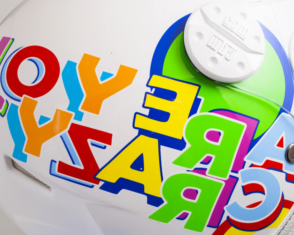 Jeder unserer Helme wird sorgfältig behandelt, um das gewünschte Finish zu erzielen. Die Schale wird nach dem Glätten mit verschiedenen Farbschichten bemalt, mit dem passenden Wasserabziehbild im gewünschten Design überzogen und anschließend mit kratzfestem Klarlack überzogen.