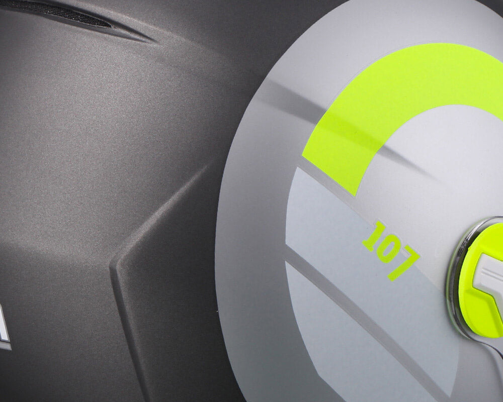 Jeder unserer Helme wird sorgfältig behandelt, um das gewünschte Finish zu erzielen. Die Schale wird nach dem Glätten mit verschiedenen Farbschichten bemalt, mit dem passenden Wasserabziehbild im gewünschten Design überzogen und anschließend mit kratzfestem Klarlack überzogen.