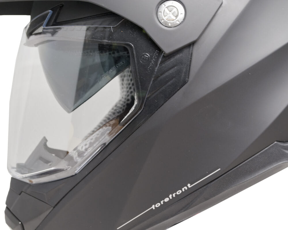 Das Visier verfügt über spezielle Stifte zum Einsetzen der Pinlock-Linse gegen Beschlagen des Visiers, das durch Atmung und unterschiedliche Innen- und Außentemperaturen des Helms auftreten kann.