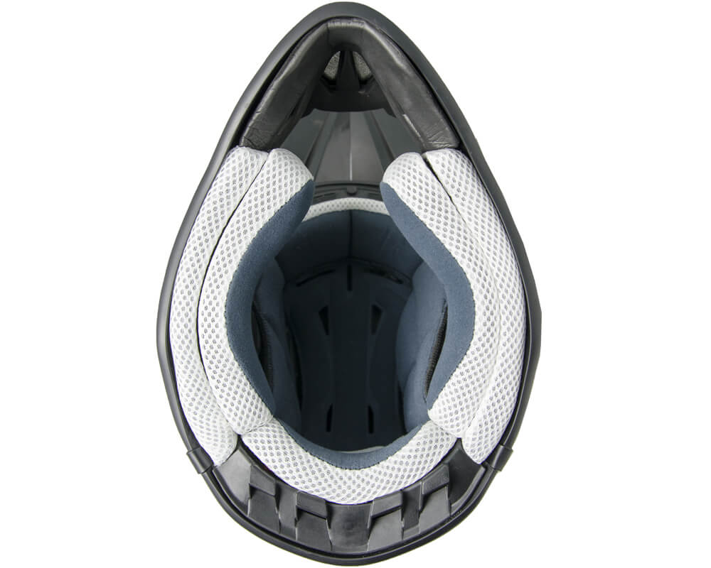 Das Belüftungssystem ermöglicht das ständige Recycling der Luft im Inneren des Helms, aber es ist die Innenpolsterung, die mit der Epidermis des Fahrers in Kontakt kommt. Aus diesem Grund sind die Innenräume von Helmen, die mit AIR STREAM INNER ausgestattet sind, ein wesentlicher Bestandteil dieses Systems. Zahlreiche Schlitze sind angrenzend an die Öffnungen der Luftkanäle der Innenschale positioniert und ermöglichen einen reibungslosen Luftdurchgang durch die Innenpolsterung. Darüber hinaus garantieren die abgestimmten und passend perforierten Stoffe die einwandfreie Funktion des gesamten Systems.