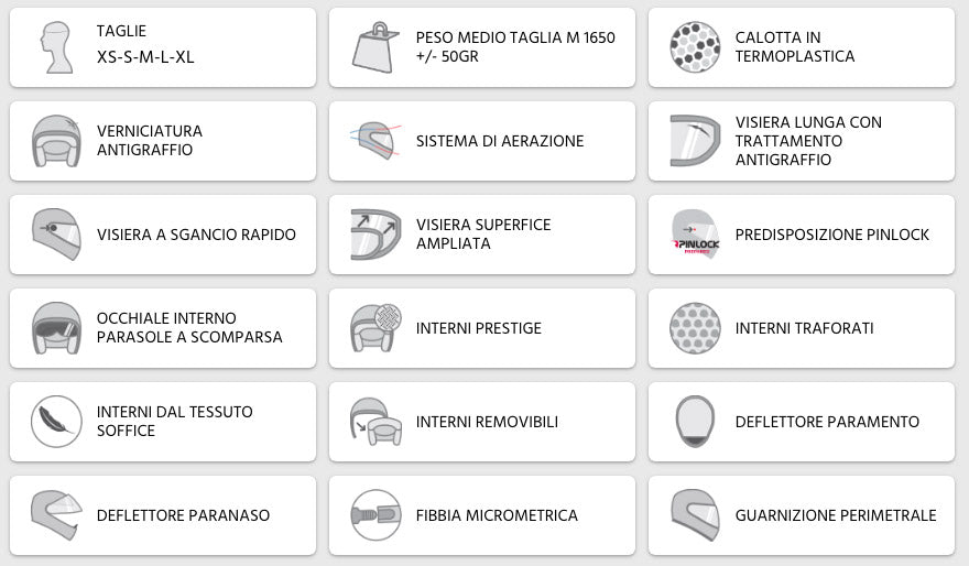 Das Visier verfügt über spezielle Stifte zum Einsetzen der Pinlock-Linse gegen Beschlagen des Visiers, das durch Atmung und unterschiedliche Innen- und Außentemperaturen des Helms auftreten kann.