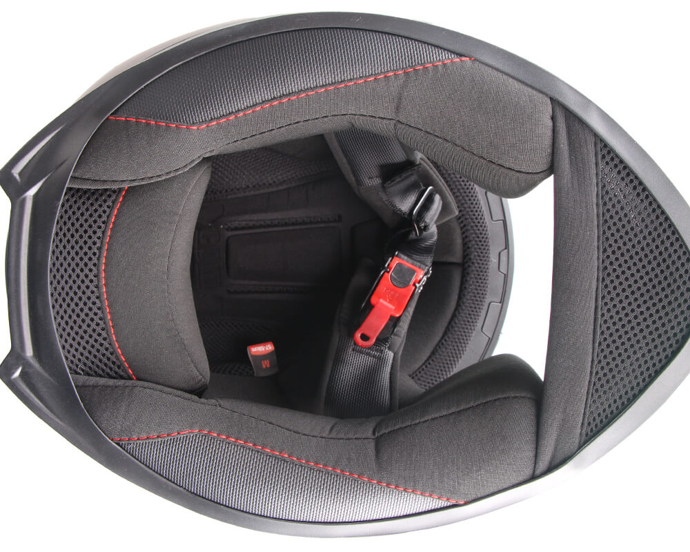 Das Belüftungssystem ermöglicht das ständige Recycling der Luft im Inneren des Helms, aber es ist die Innenpolsterung, die mit der Epidermis des Fahrers in Kontakt kommt. Aus diesem Grund sind die Innenräume von Helmen, die mit AIR STREAM INNER ausgestattet sind, ein wesentlicher Bestandteil dieses Systems. Zahlreiche Schlitze sind angrenzend an die Öffnungen der Luftkanäle der Innenschale positioniert und ermöglichen einen reibungslosen Luftdurchgang durch die Innenpolsterung. Darüber hinaus garantieren die abgestimmten und passend perforierten Stoffe die einwandfreie Funktion des gesamten Systems.