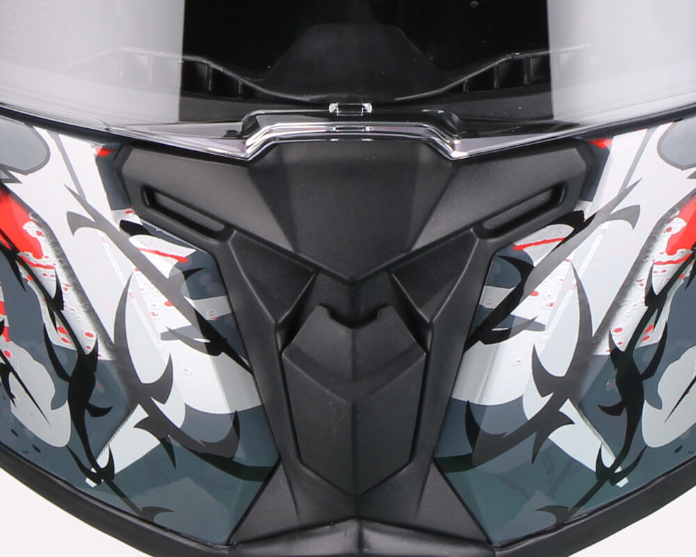 Leicht abnehmbarer Nasenschutz, dient dazu, die warme Atemluft nach unten zu leiten, um ein Beschlagen des Visiers zu verhindern.