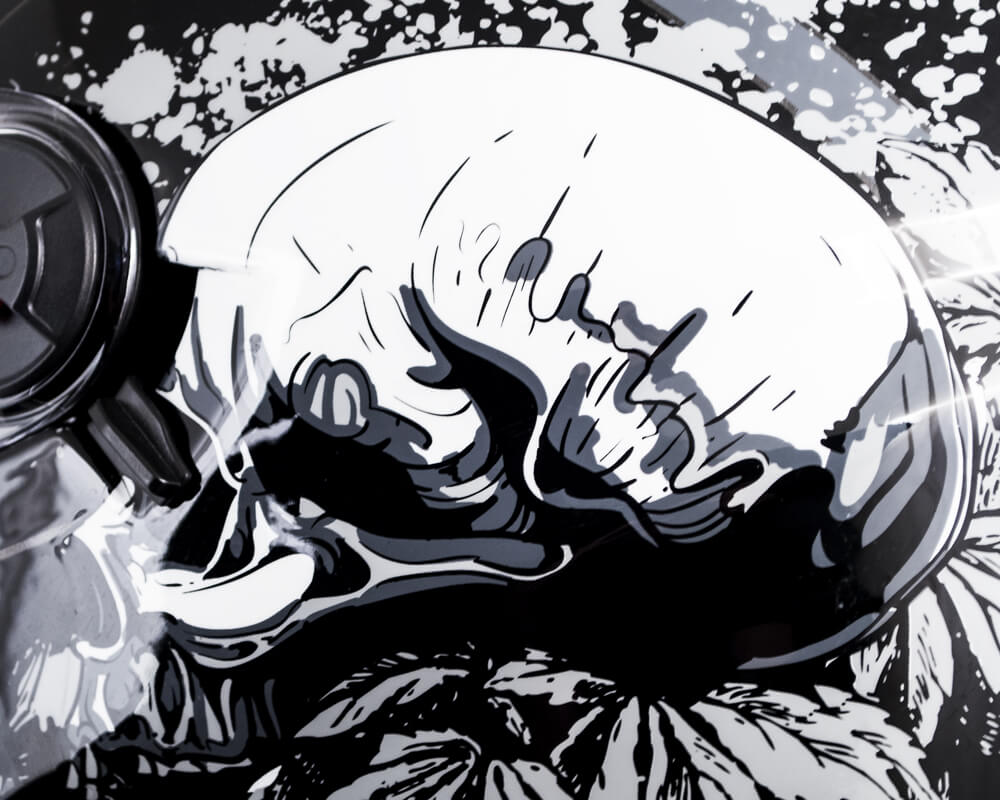 Jeder unserer Helme wird sorgfältig behandelt, um das gewünschte Finish zu erzielen. Die Schale wird nach dem Glätten mit verschiedenen Farbschichten bemalt, mit dem passenden Wasserabziehbild im gewünschten Design überzogen und anschließend mit kratzfestem Klarlack überzogen.