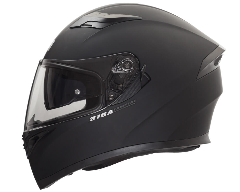 Integral mit modernen und eckigen Linien, ist der 316 mit einem externen Visier mit einer Veranlagung für ein PINLOCK-Objektiv ausgestattet. Es hat auch extra getönte einziehbare Innengläser und ein Belüftungssystem, das aus einem Lufteinlass am Kinnschutz, oberen Lufteinlässen und einem doppelten hinteren Luftabsauger besteht. Die herausnehmbaren und waschbaren Innen- und Wangenpolster werden durch einen Nasenschutzabweiser bereichert, um ein Beschlagen des Visiers zu verhindern, und einen Gesichtsabweiser, der dazu beiträgt, das Eindringen von Luft aus dem unteren Teil des Helms zu verhindern.