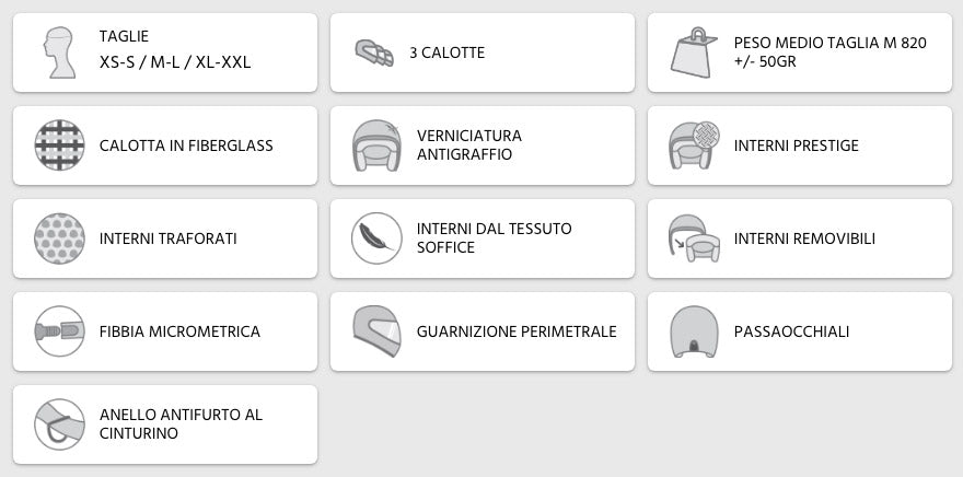 Der Jethelm für Scooter, Motorräder und Quads 170 ist das Remake der klassischen 70er-Schale, aber leicht, weil er aus Fiberglas besteht und ein kleines Volumen hat (dank der Verfügbarkeit von drei Außenschalengrößen).
