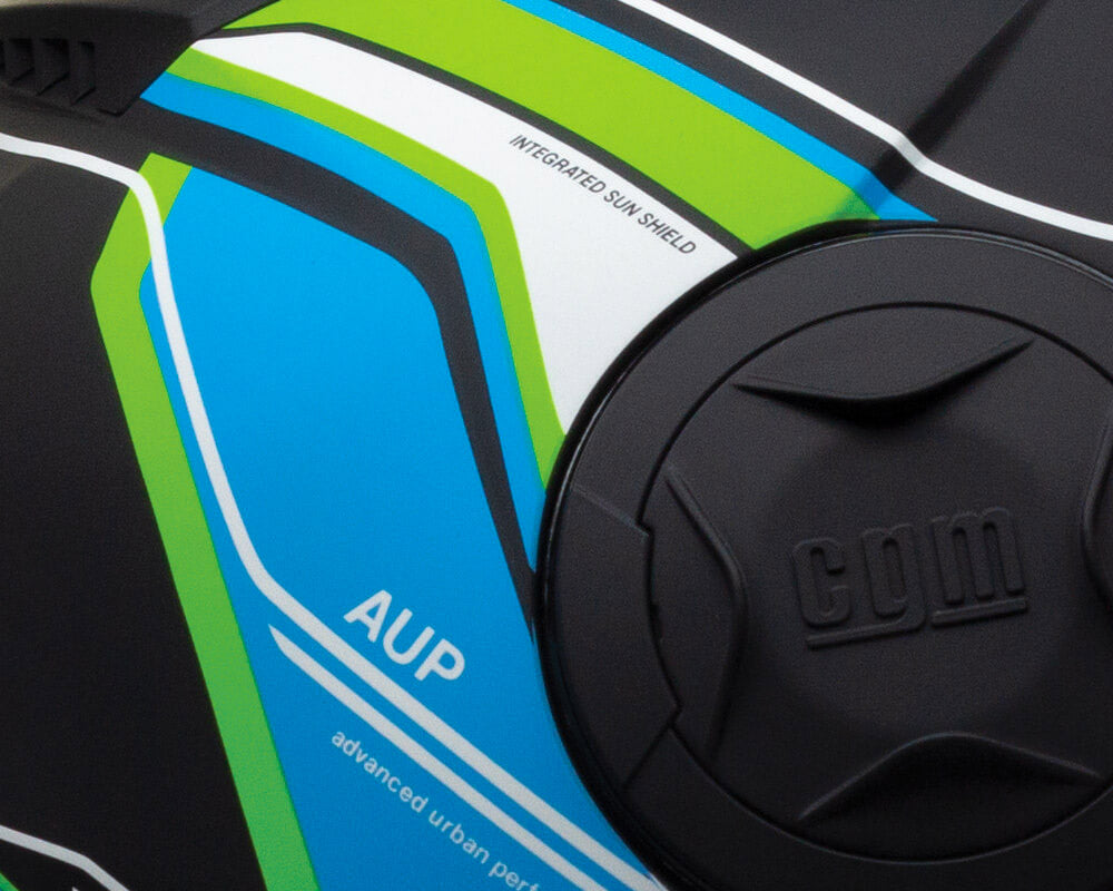 Hergestellt in zwei Außenschalengrößen, um den Komfort jeder Größe zu verbessern, ist sie mit einem langen Außenvisier ausgestattet, das sich bis zum Kinn erstreckt, mit einer PINLOCK-Linsenprädisposition. Es hat eine extra getönte interne einziehbare Brille, die durch Drehen der linken Platte des Helms angepasst wird. Es ist auch mit einem Belüftungssystem ausgestattet, das die vorderen Lufteinlässe und hinteren Abzüge nutzt, mit perforierten, herausnehmbaren und waschbaren Innenräumen, die durch hintere reflektierende Bänder angereichert sind, um die passive Sicherheit zu verbessern.