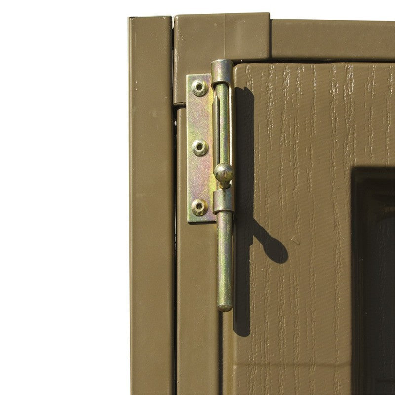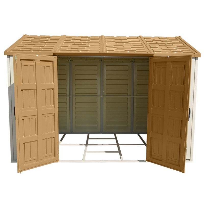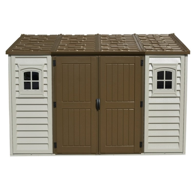 Die helle Farbe der Wände in Kombination mit der dunkleren Farbe der Türen und des Daches macht unser Haus zu einem der beliebtesten. Diese Schuppen sind aus einem der zähesten, witterungsbeständigsten Kunststoffe gefertigt und mit einem stabilen inneren Stahlrahmen verstärkt, was ihnen eine unübertroffene Festigkeit verleiht.