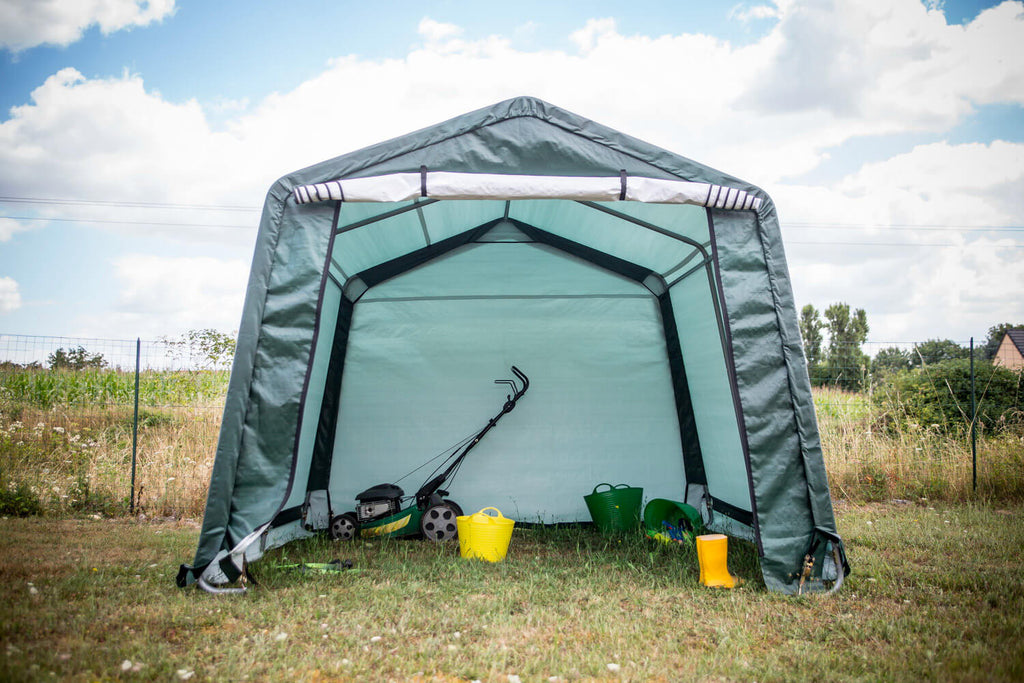Ideale per riparare gli attrezzi da giardino, moto, scooters, biciclette, legna da ardere e mobili da giardino. Tela interna di colore bianco che offre maggiore luminosità, resistente agli agenti atmosferici grazie al suo telo impermeabile e antistrappo trattato anti-UV per la protezione dai raggi del sole, duraturo ed efficace.