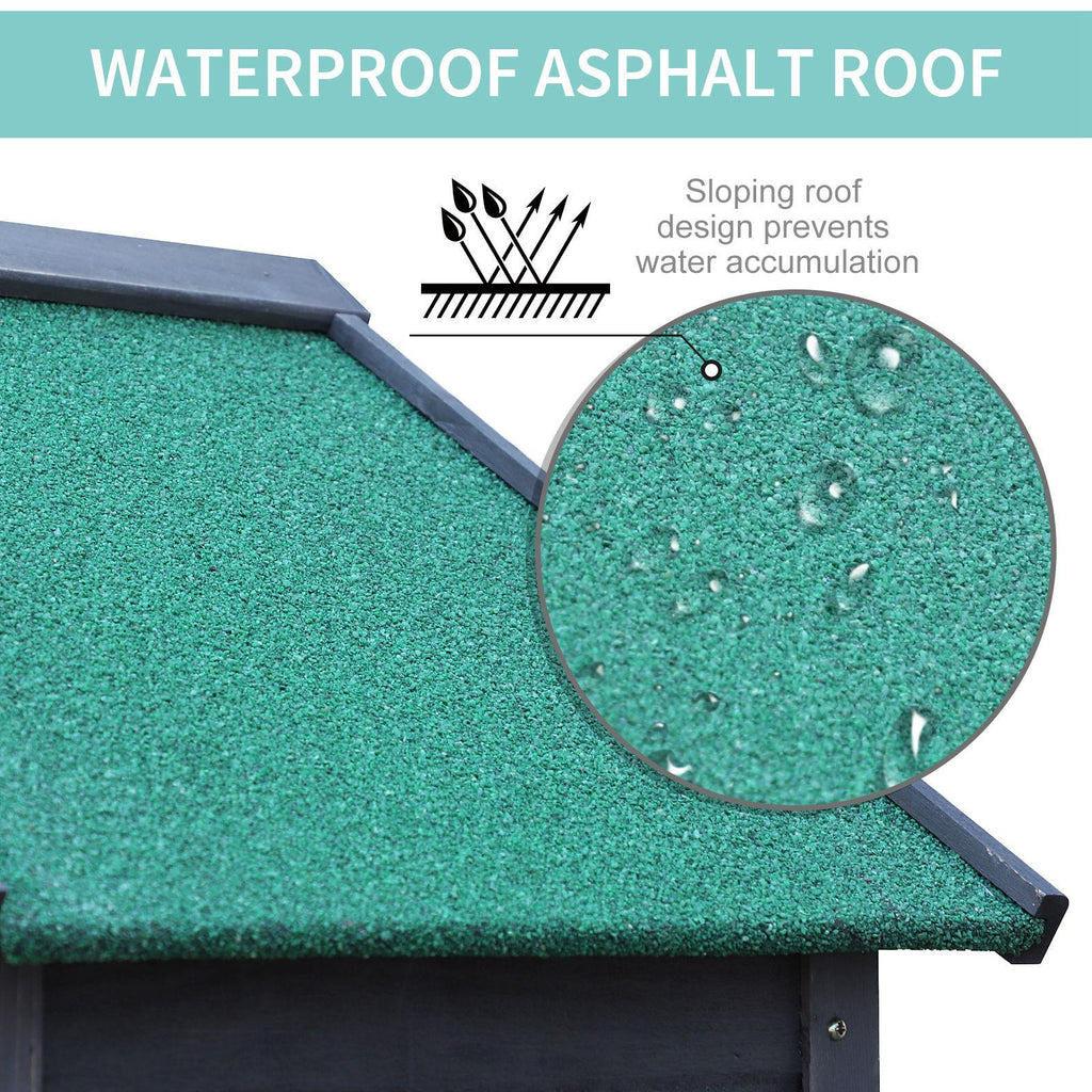 - SCHUTZ: Das geneigte Bitumendach dieses Gartenhauses schützt es vor Wind und Regen und verhindert, dass sich das Haus mit Wasser füllt