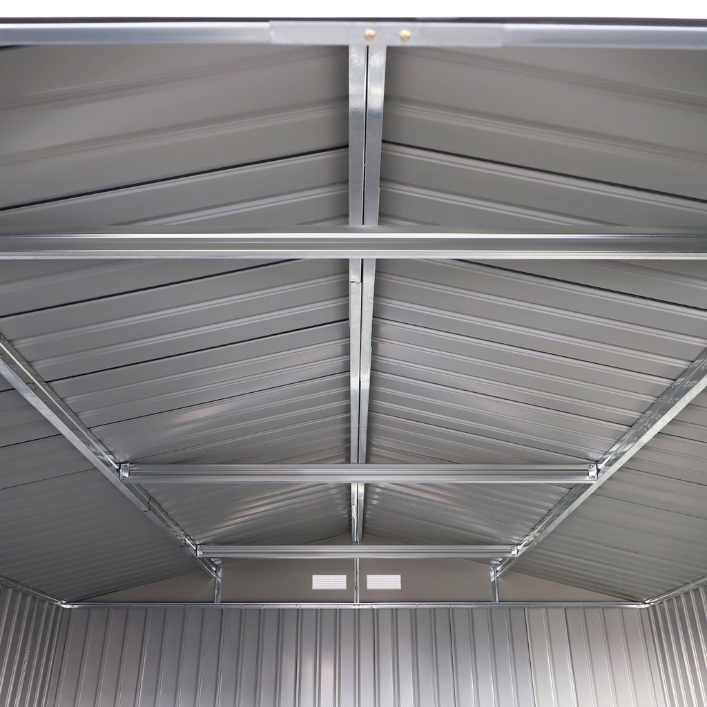 Dieser Stahlschuppen hat erhebliche Vorteile gegenüber herkömmlichen Holzmodellen, was ihn zu einer attraktiveren Kaufentscheidung macht. Ein Stahlschuppen ist langlebiger und bietet einen besseren Schutz vor Gefahren. Wenn Sie Stauraum im Freien suchen, sich aber nicht mit den Kosten und der Wartung eines Holzmodells auseinandersetzen möchten, ist dieses Gartenhaus die perfekte Wahl.