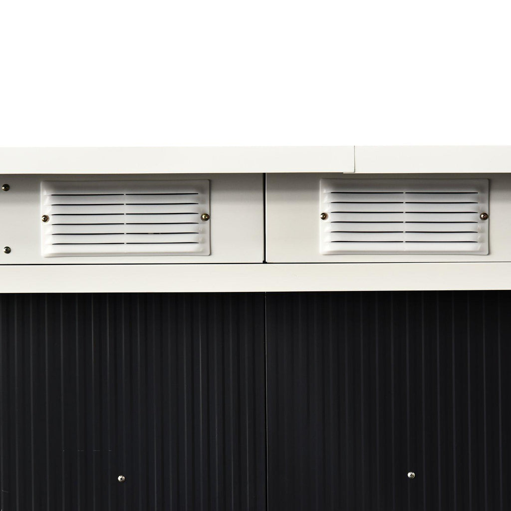 - LÜFTUNGSFENSTER: 2 Frontöffnungen ermöglichen eine optimale Luftzirkulation im Inneren des Geräteschuppens, um die Bildung von Feuchtigkeit zu verhindern.