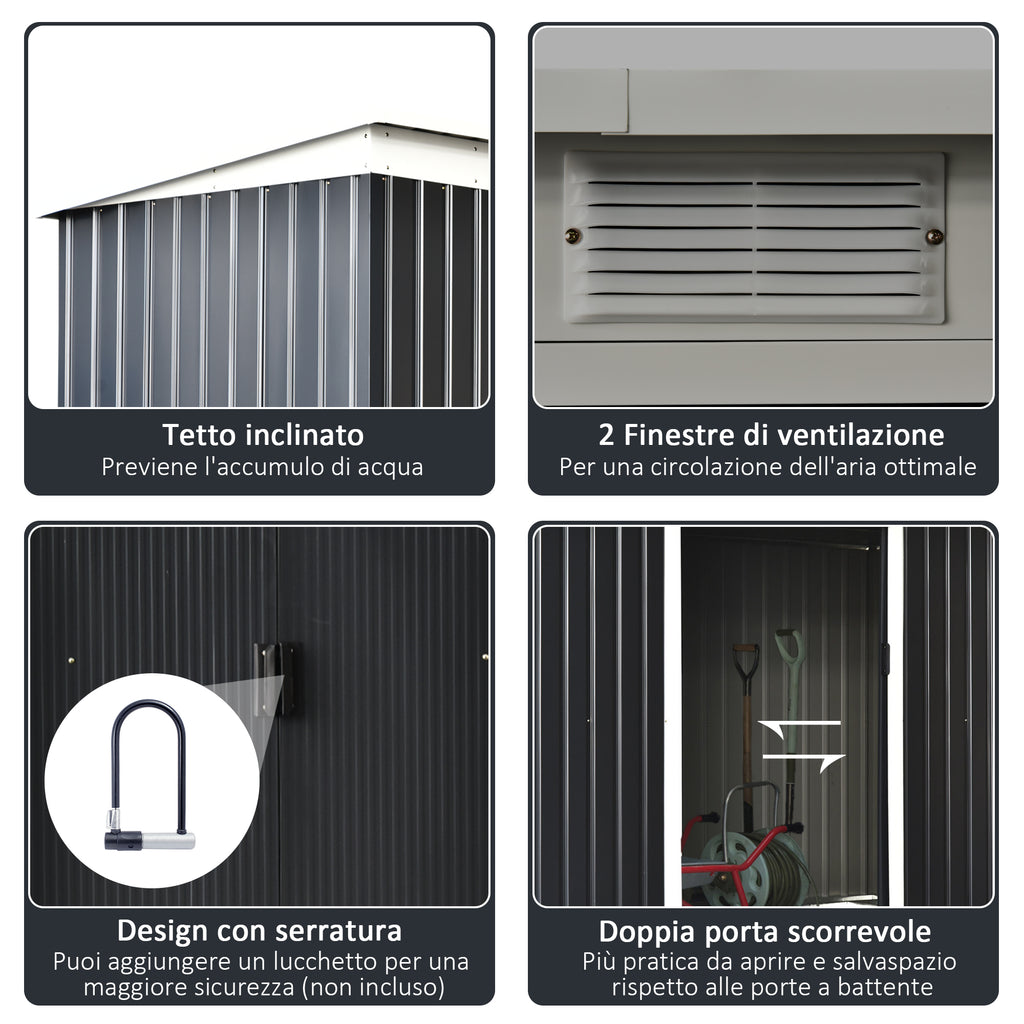 Gartenbox aus Blech zur Aufbewahrung von Werkzeugen 277 x 130 x 173 cm Dunkelgrau
