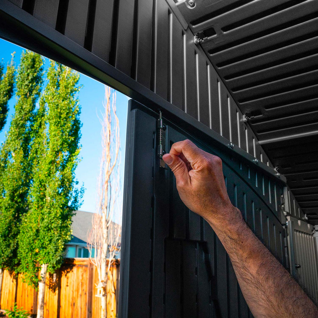 - Casetta in polietilene alta densità a doppia parete (HDPE). Colore grigio con venature